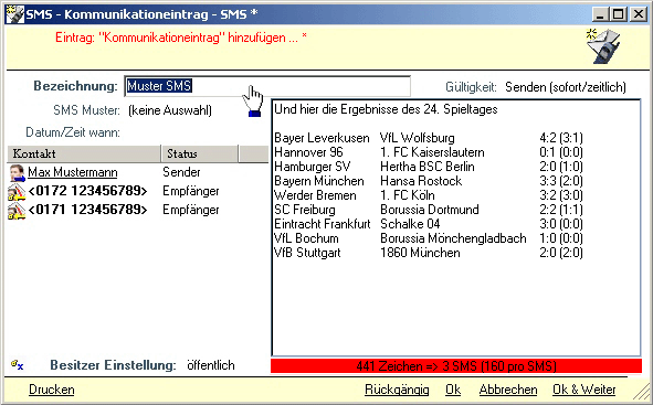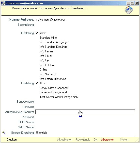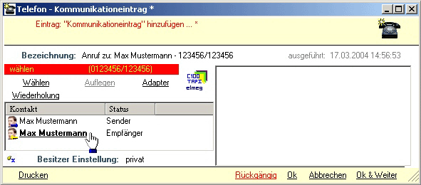 Es können zu jeder Kommunikationsart beliebig viele Einträge gemacht werden.