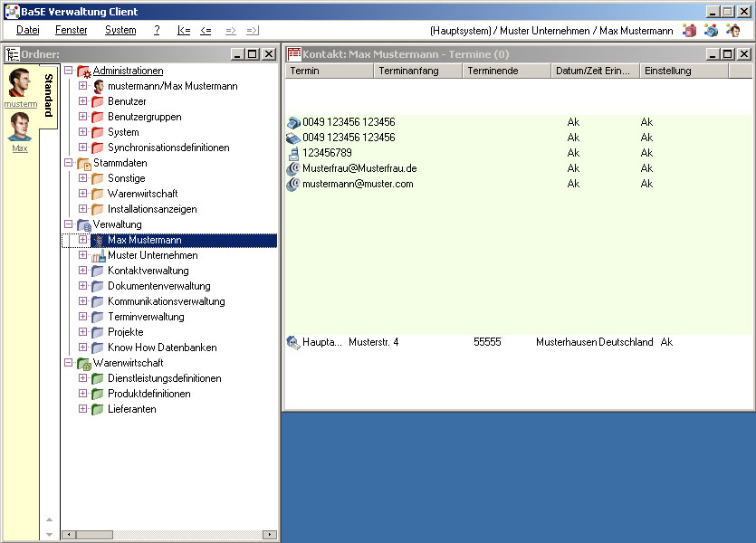 Adressverwaltung,Dokumente,Dokumentenverwaltung,E-Mail,Erinnerung,Erinnerungsfunktion,Geschäftsabwicklung,Kalender,Kommunikation,Kommunikationsverwaltung,Kontakte,Kontaktverwaltung,Mandantenfähigkeit,Nachrichten,SMS,Software,Stammdaten,Synchronisierung,TAPI,Telefonie,Termine,Terminplanung,Terminserien,Terminverwaltung,Terminwesen,Unternehmenskommunikation,Unternehmensverwaltung,Verwaltung,Warenwirtschaft,CRM,System